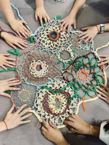 Experimentar en la creación de piezas textiles a través de la innovación y co-creación, sobre una metodología circular y en espiral donde el relato textil es el resultado de un proceso de creación que reflexiona sobre las técnicas textiles locales dando origen a nuevas métricas de creación e integración del territorio. Se trabajará desde lo personal a lo colectivo para crear un “rizoma” que traerá un espacio de reflexión sobre la importancia de la diversidad cultural y como en esta coexistencia diversa vamos tejiéndonos unas con otras haciendo posible avanzar en el espiral de la vida. Vivenciar que el trabajo grupal, sin importar la latitud, puede transformar nuestras realidades.